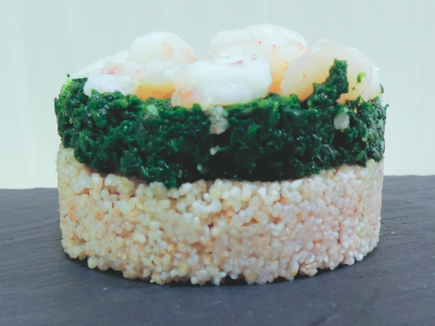 - Corta la berenjena y la patata en rodajas finas y pásalas por la plancha hasta que doren o también las puedes hacer al vapor. Reserva.